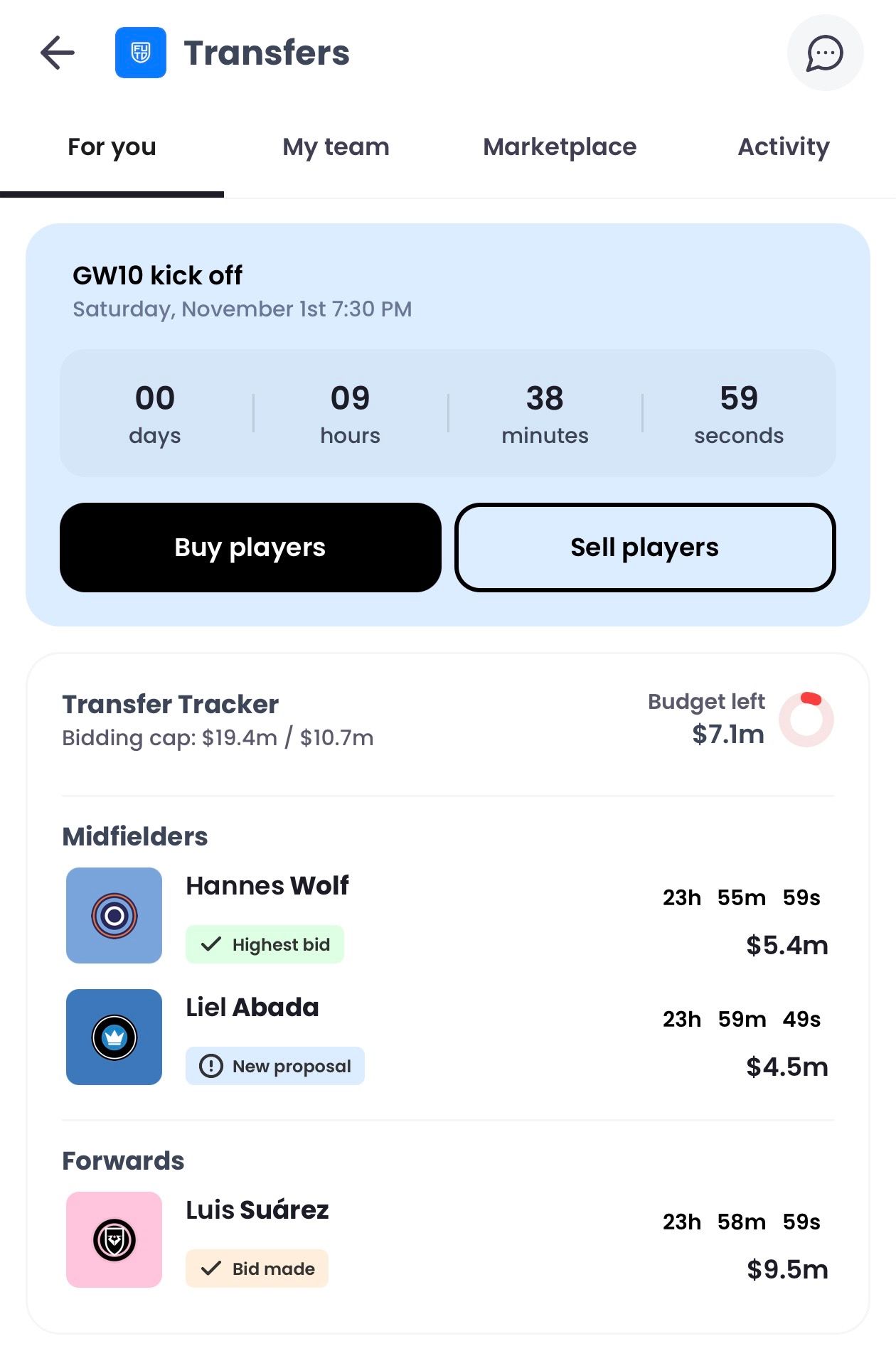 This includes bidding for players owned by other managers in your league and any negotiation that may come from that.